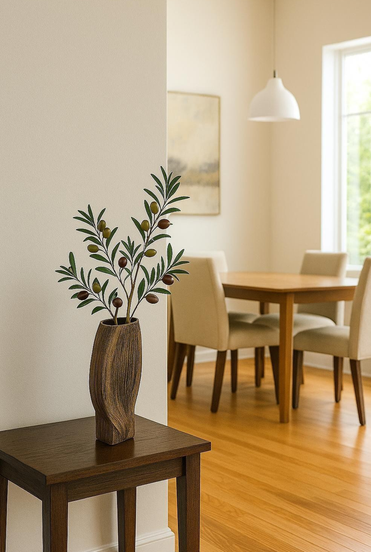 design : tall oval vase with a subtly curved silhouette and natural textured surface , blending modern minimalism with rustic charm